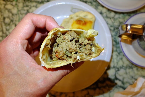 empanada就像我们的饺子一样,里面可以包的东西很多样性,这个包的是牛肉。
