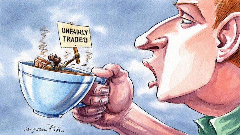 在那些为你采茶或摘榛子的人没有获得公平对待的情况下,我有一个小小的建议。除非被证明并非如此,否则所有商品都应该强制性贴上“不公平交易”的标签。